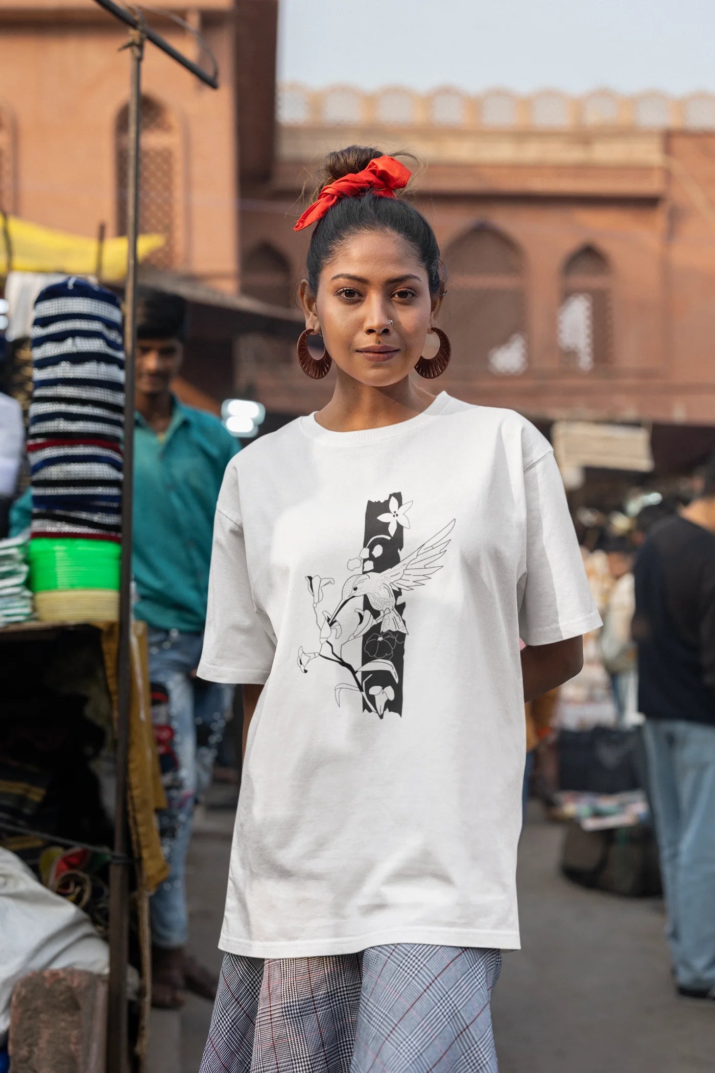 The Flower Bird Oversized T-Shirt is a celebration of freedom, nature, and effortless boho style. Designed for those who vibe with the earth, this tee features a beautifully detailed bird surrounded by blooming florals – symbolic of growth, harmony, and personal freedom.