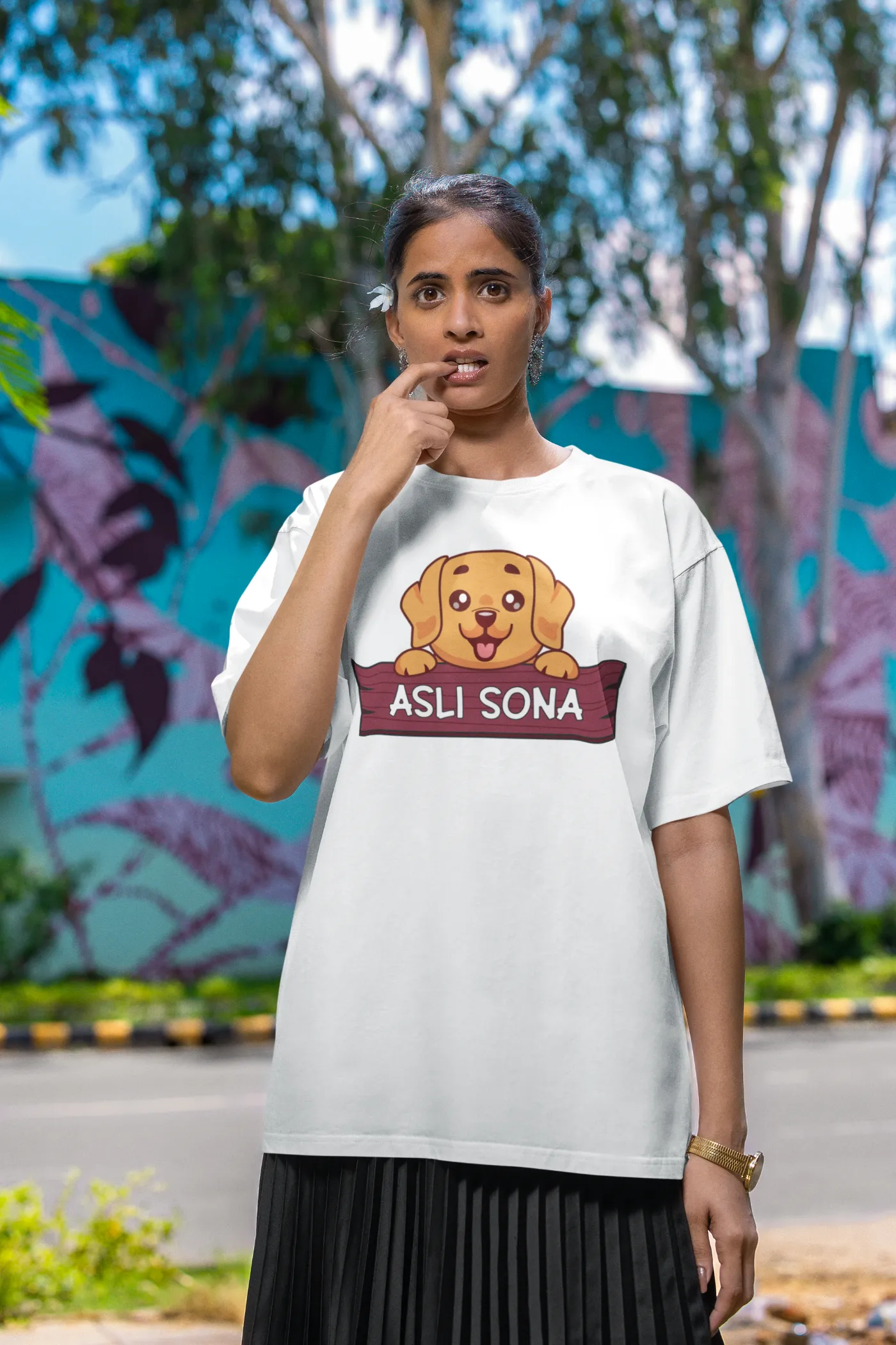 Express your love for Golden Retrievers and wear your pet parent pride with the Asli Sona Oversized T-Shirt. Order now from Dhaakad Tau and let your love for dogs shine!